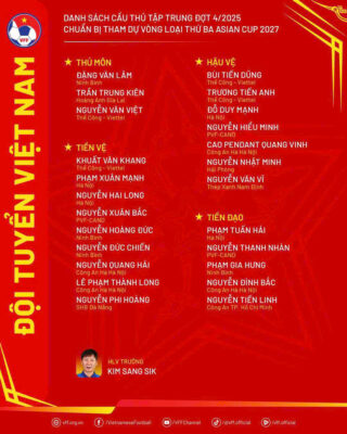 Ngày 30/9, HLV trưởng Kim Sang Sik đã công bố danh sách 24 cầu thủ đội tuyển Việt Nam tập trung đợt 4/2025.