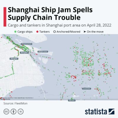 Bản đồ cho thấy dòng hàng hóa toàn cầu bị kẹt cứng tại cảng Thương Hải
