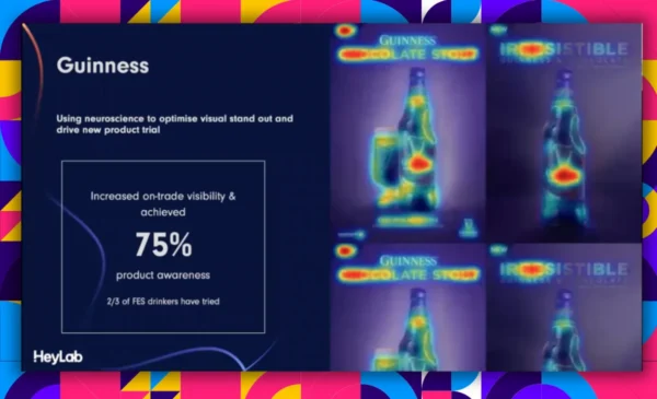 Một ví dụ khác là Guinness – thương hiệu bia đen nổi tiếng của Ireland. Guinness cũng sử dụng bài kiểm tra mức độ nổi bật về mặt thị giác (visual saliency testing) để đảm bảo rằng các yếu tố hình ảnh của họ thực sự thu hút sự chú ý.