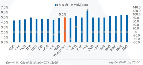 Bên cạnh đó, các ngân hàng cũng áp dụng các chương trình ưu đãi, khuyến mãi cộng thêm lãi suất. Điển hình như đầu tháng 11, BVBank công bố chương trình ưu đãi “10 ngày vàng lãi suất” với lãi suất cao nhất 6,8%/năm kỳ hạn 12 tháng gửi trên kênh online, áp dụng từ 3-13/11/2025; kèm thêm ơ hội mới để nhận cộng thêm đến lãi suất đến +1,2%/năm, áp dụng các kỳ hạn 1 tháng 4,75%/năm, 6 tháng 6,5%/năm, 12 tháng 6,8%/năm. Ngân hàng này cũng ra mắt chứng chỉ tiền gửi online với lãi suất cao cùng kỳ hạn linh hoạt 06 tháng, 09 tháng, 12 tháng, 15 tháng. Cụ thể, với số tiền tối thiểu chỉ từ 10 triệu đồng, khách hàng có thể tham gia sản phẩm với đa dạng kỳ hạn và linh hoạt nhận lãi hàng tháng hoặc cuối kỳ. Đối với khách hàng chọn lãnh lãi cuối kỳ với kỳ hạn 6 tháng lãi suất 5,8%, 9 tháng 5,9%, 12 tháng lãi suất 6,1%, 15 tháng 6,3%…